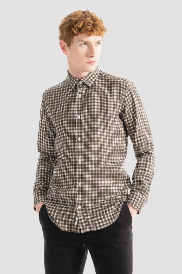Эта коричневая клетчатая рубашка, незаменимая часть комфортного и стильного стиля, внесет разнообразие в Ваши повседневные комбинации.