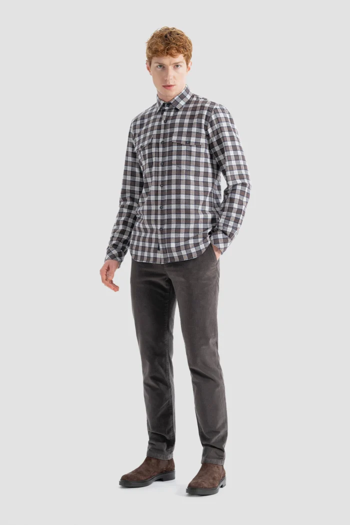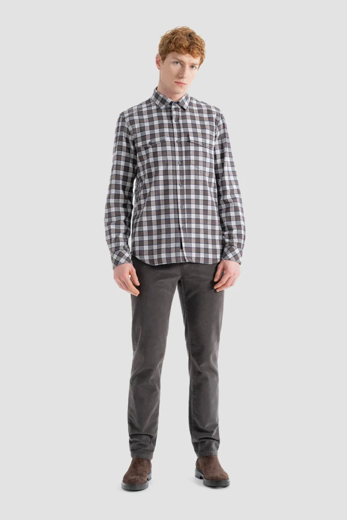 Коричнево-белая клетчатая узорчатая зимняя рубашка