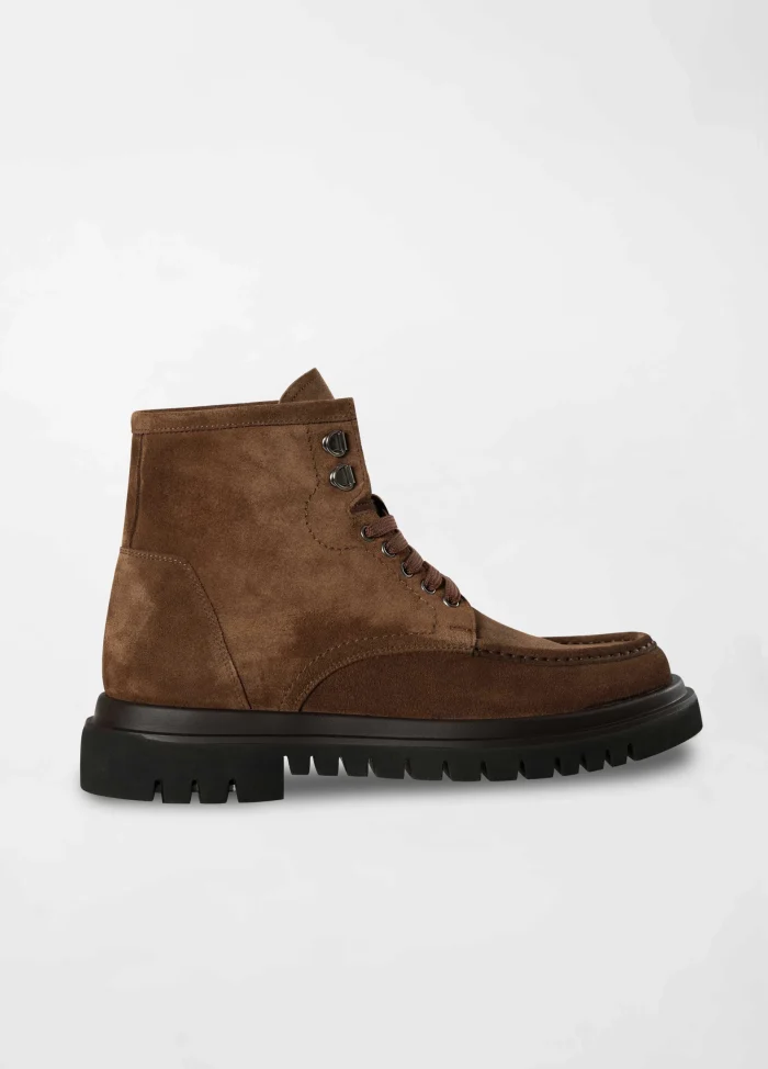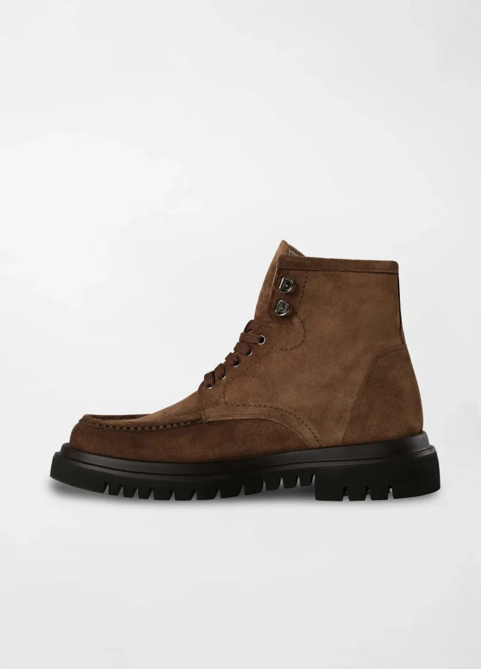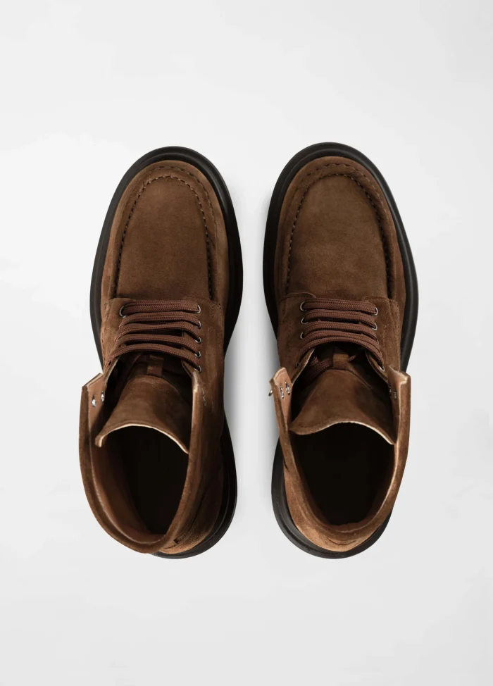 Эти коричневые замшевые ботинки на шнуровке с каждым шагом будут подчеркивать Ваш стиль и сохранять комфорт на первом месте.nВ то время как прочная подошва обеспечивает максимальное сцепление с суровыми погодными условиями зимнего сезона, мягкая замшевая поверхность сохраняет элегантность на первом плане.nШнуровка обеспечивает идеальную посадку на лодыжке, а прочные металлические кольца завершают дизайн.nЕсли Вы ищете ботинки, которые подходят для ежедневного использования и прекрасно дополнят Ваши спортивные и повседневные комбинации, эта модель для Вас!