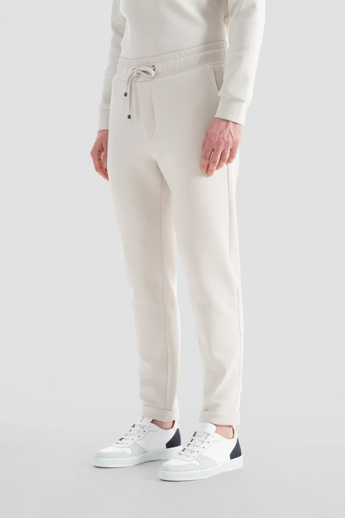 Созданный в современной интерпретации стиля минимализм, этот комплект из толстовки и треников кремового цвета предлагает одновременно комфортный и стильный образ.