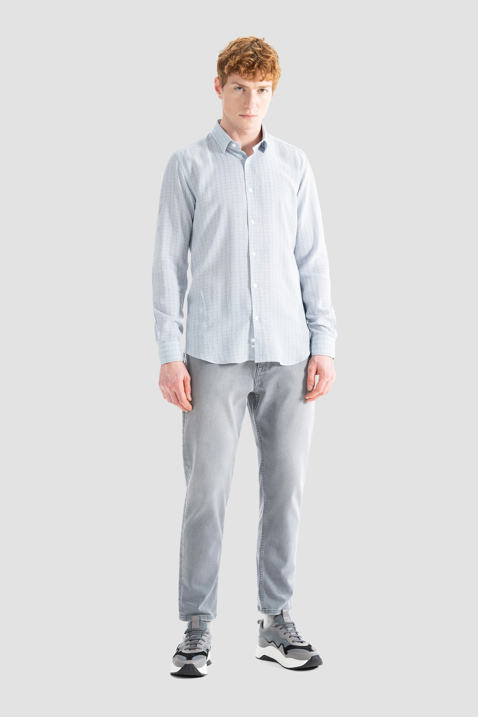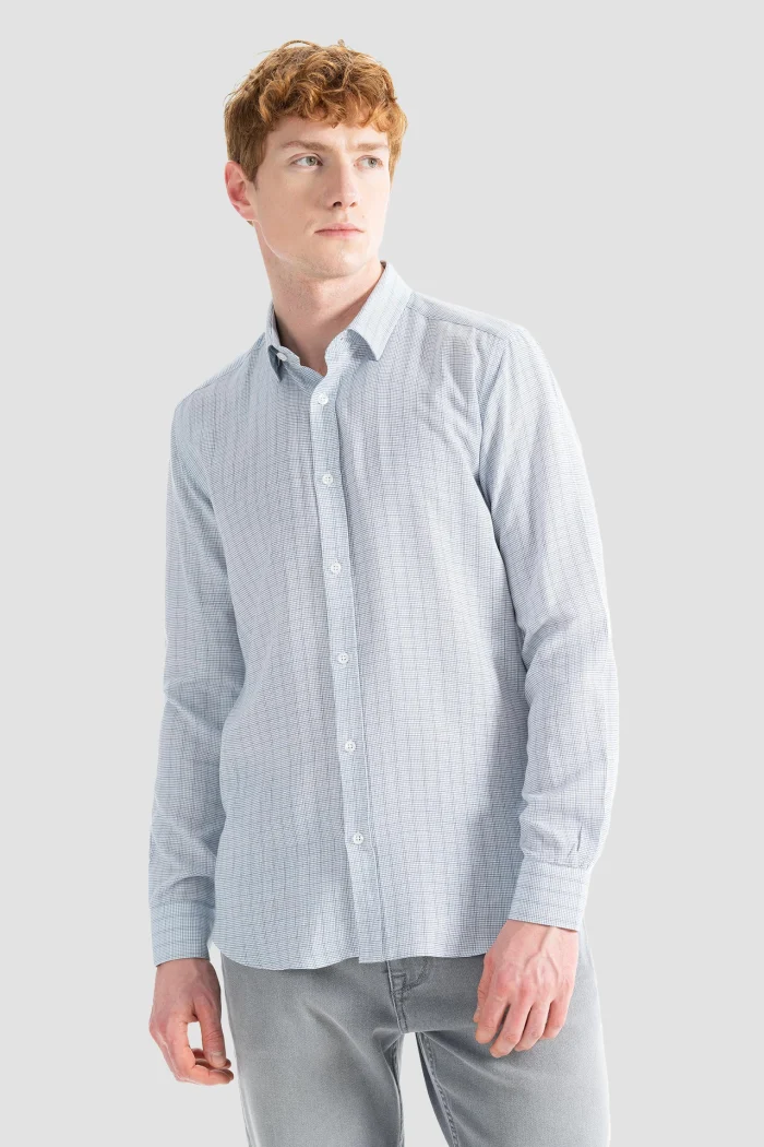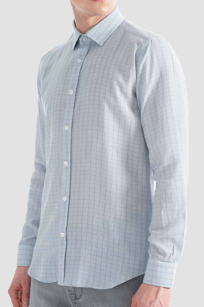 Эта светло-голубая клетчатая рубашка, сочетающая в себе классические линии и современные штрихи, — вещь, которой можно отдать предпочтение в любой обстановке, от деловой жизни до повседневной элегантности.nЕе дышащая и легкая ткань обеспечивает комфорт в течение всего дня, а тонкий клетчатый узор добавляет элегантности Вашему стилю.nЕго можно легко сочетать как со спортивными, так и с классическими брюками.nНеподвластная времени вещь, которую можно использовать в каждом сезоне Вашего гардероба, эта рубашка выделяется своим простым, но стильным видом.