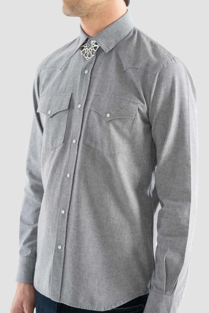 Эта современная ковбойская рубашка, которая сочетает в себе элегантность и комфорт, сочетает в себе западный стиль с городской элегантностью. Ее мягкая текстура и приятная для кожи ткань обеспечивают комфорт в течение всего дня, а ее серый тон обеспечивает привлекательный вид в любой обстановке. Выделяясь своими тонкими деталями и кроем, эта рубашка добавит изысканности вашему стилю как в повседневных сочетаниях, так и в особые моменты. Носите ли вы ее отдельно или под курткой, эта рубашка обещает изменить любой стиль. Добавьте эту рубашку в свой гардероб, чтобы разнообразить свой стиль одежды и ослепить своей элегантностью в любое время!