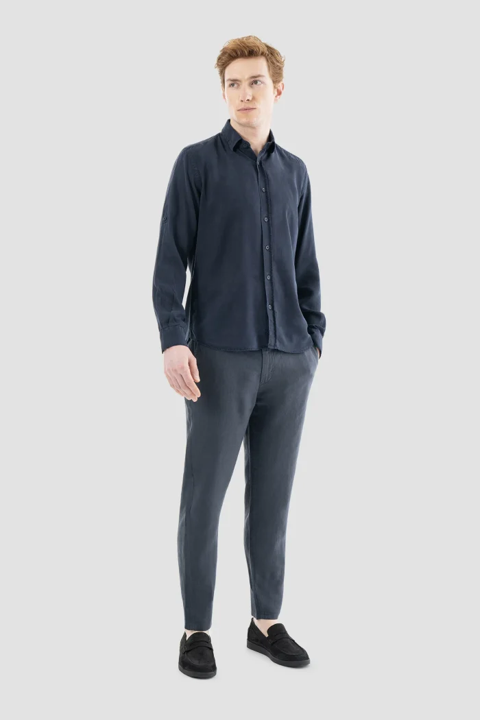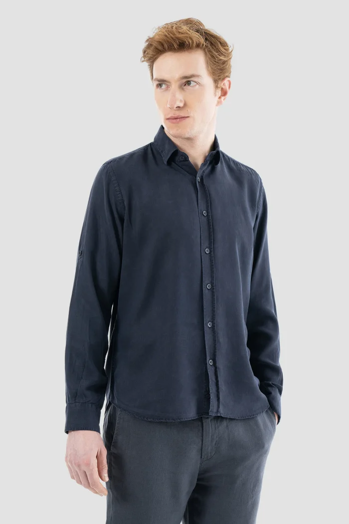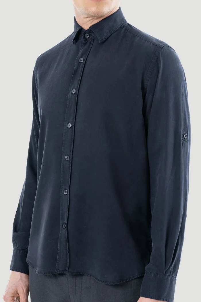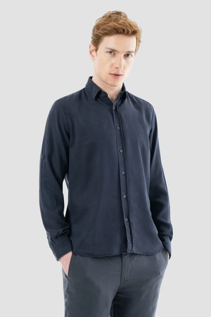 Темно-синяя рубашка из тенсела с длинными рукавами