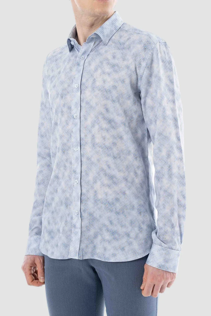 Эта классическая узорчатая рубашка с длинными рукавами, которая подчеркнет Вашу элегантность и стиль, станет незаменимой частью Вашего гардероба благодаря своему элегантному дизайну и высококачественной ткани tencel.nИдеально подходит как для работы, так и для повседневного использования Цвет: Светло-голубой с мелким узором Тип воротника: Классический воротник Ткань: Мягкая и прочная ткань Tencel Покрой: Зауженный крой