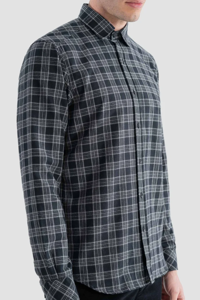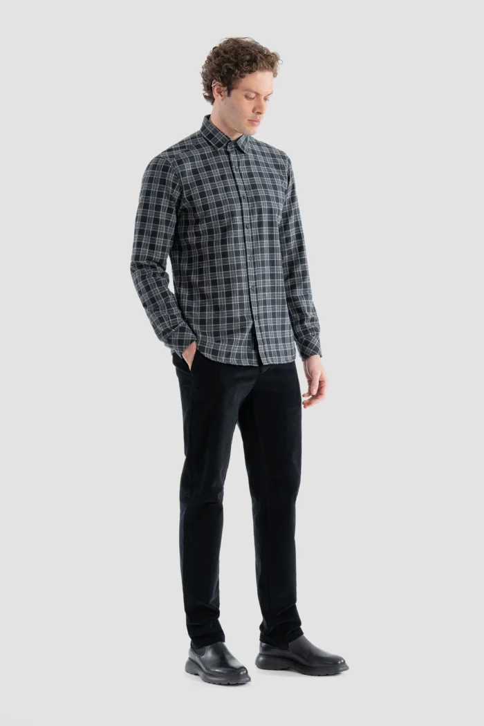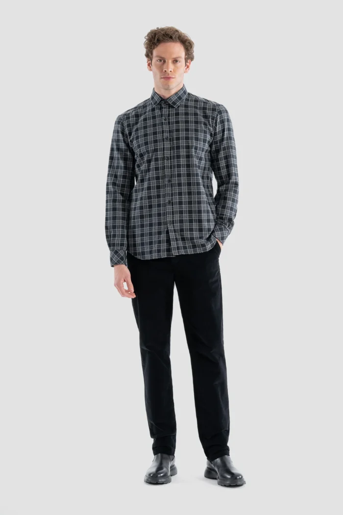 Эта клетчатая рубашка, которая должна быть в гардеробе современного мужчины, привлекает внимание своим простым и стильным дизайном.