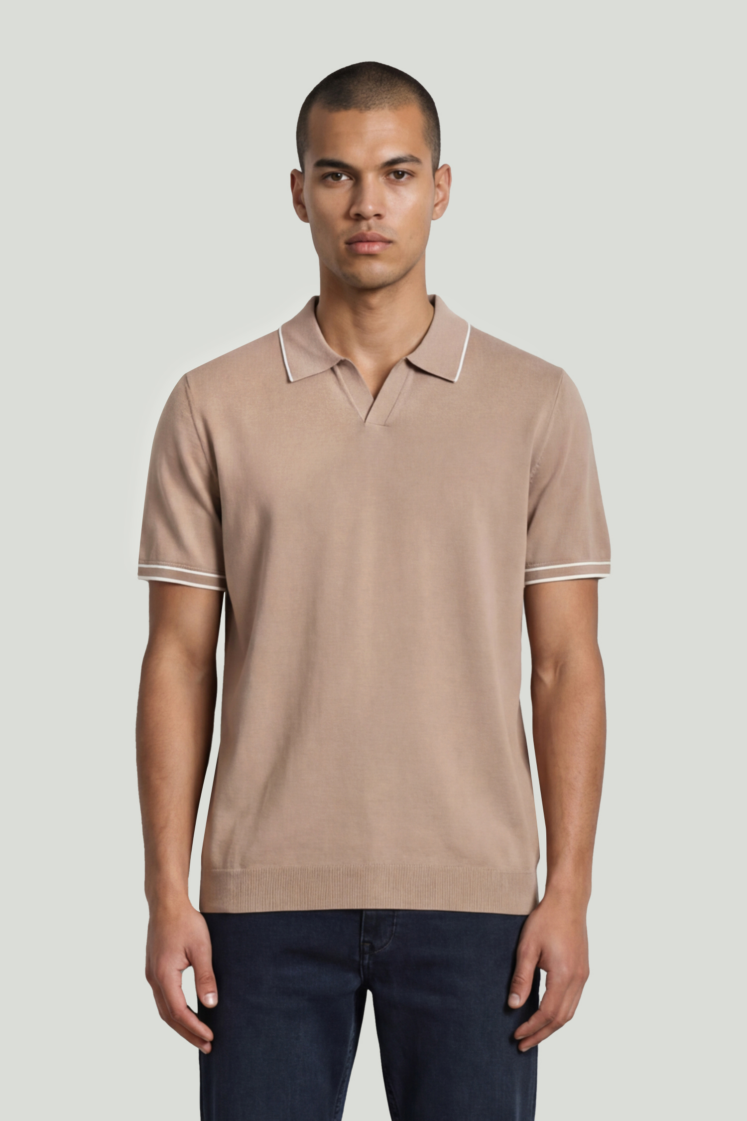 Beige Polo Collar Knitted T-shirt
