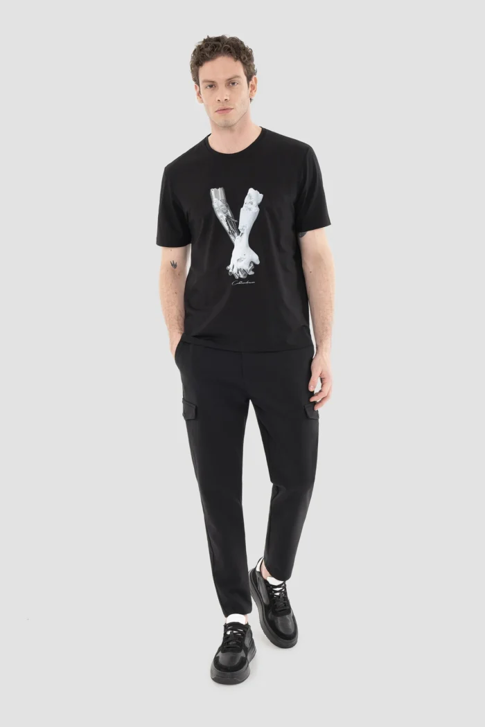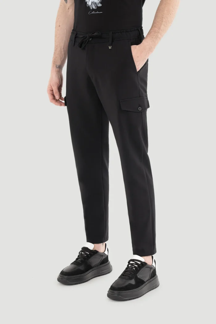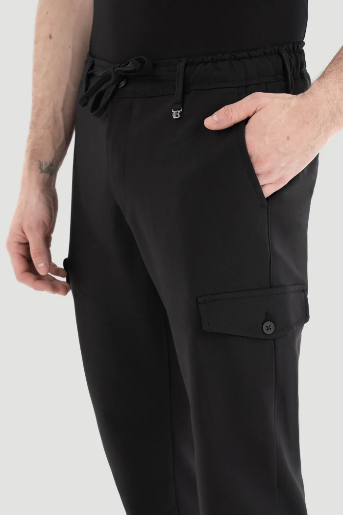 Эти стильные и удобные черные брюки-джоггеры с утягивающейся талией созданы для мужчин, ведущих современный и активный образ жизни.