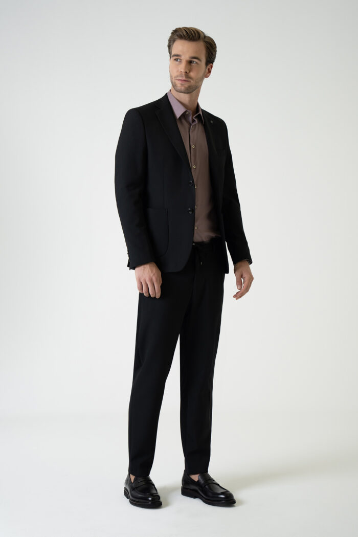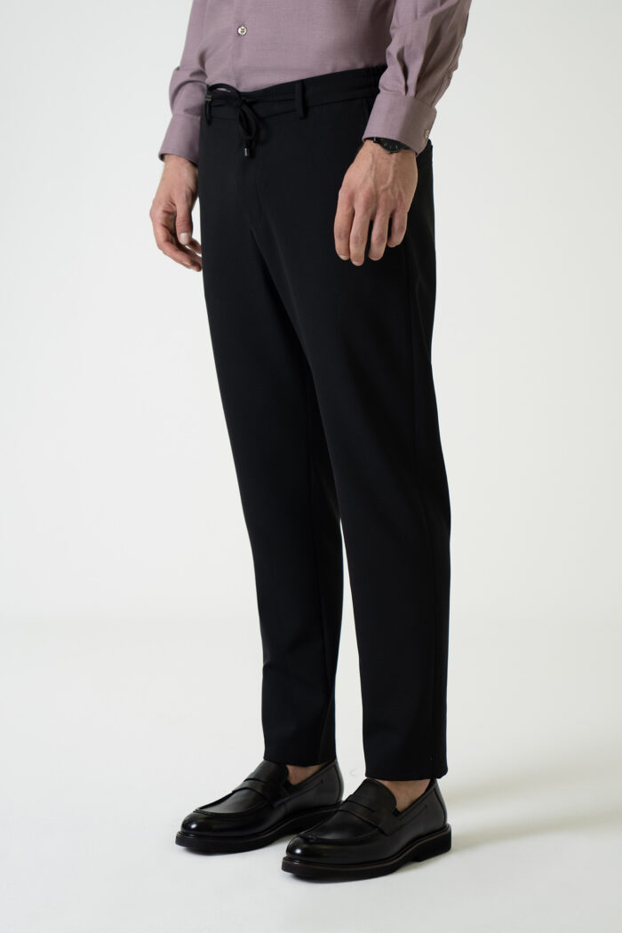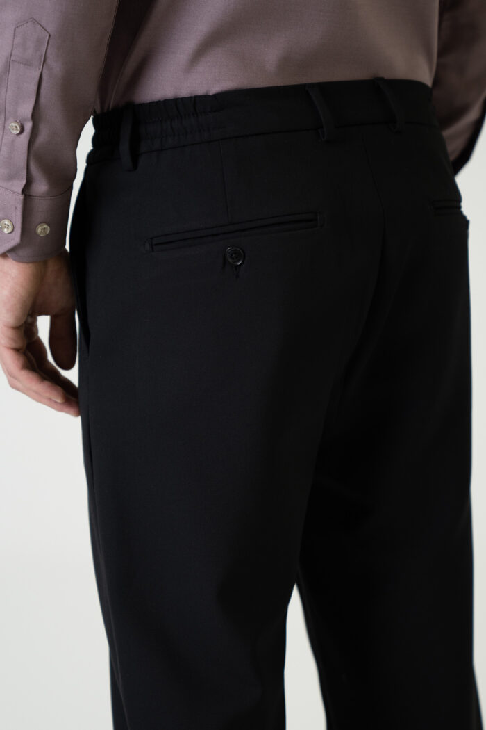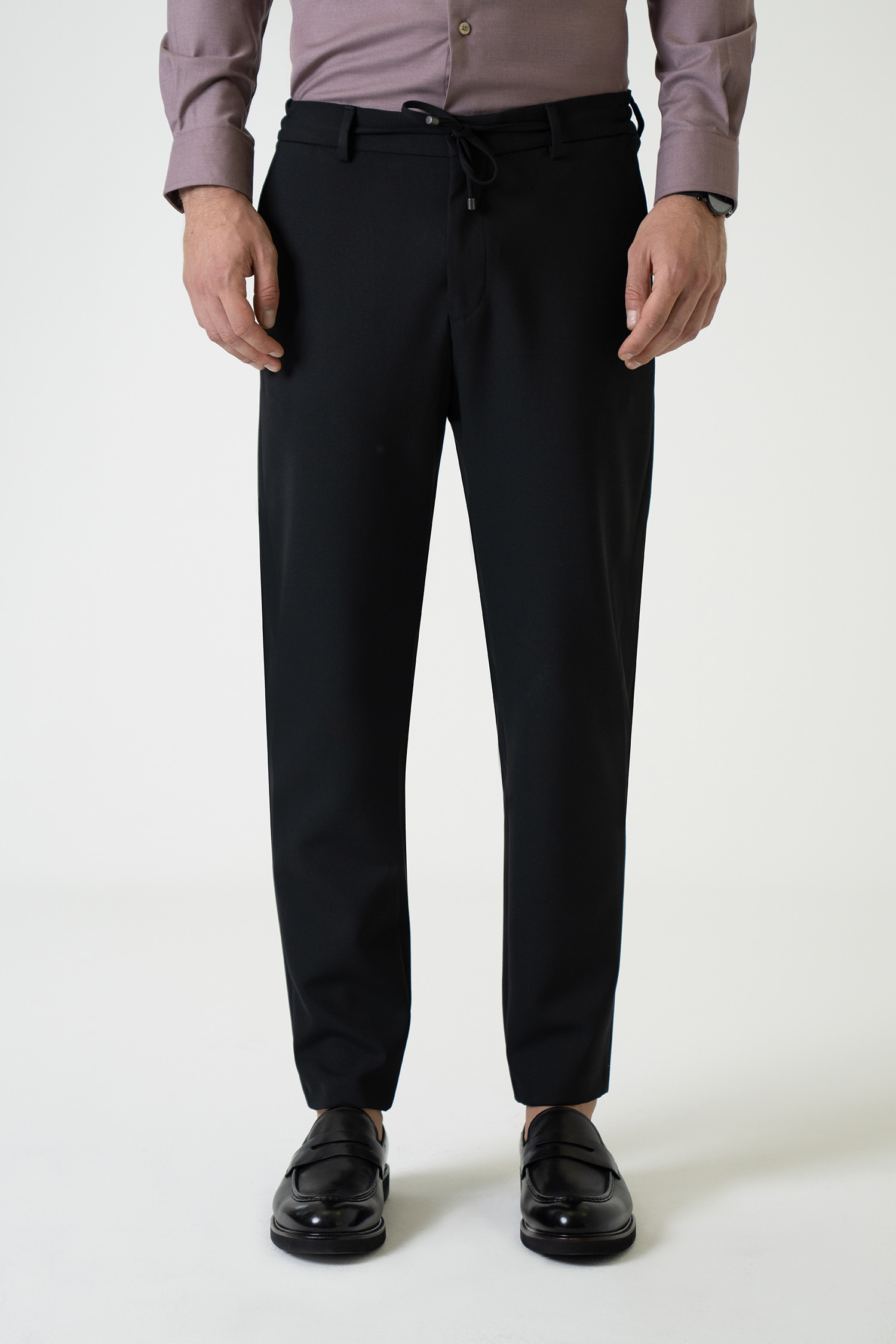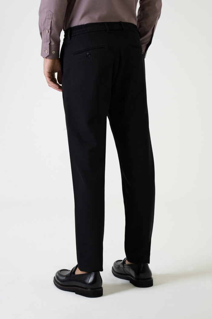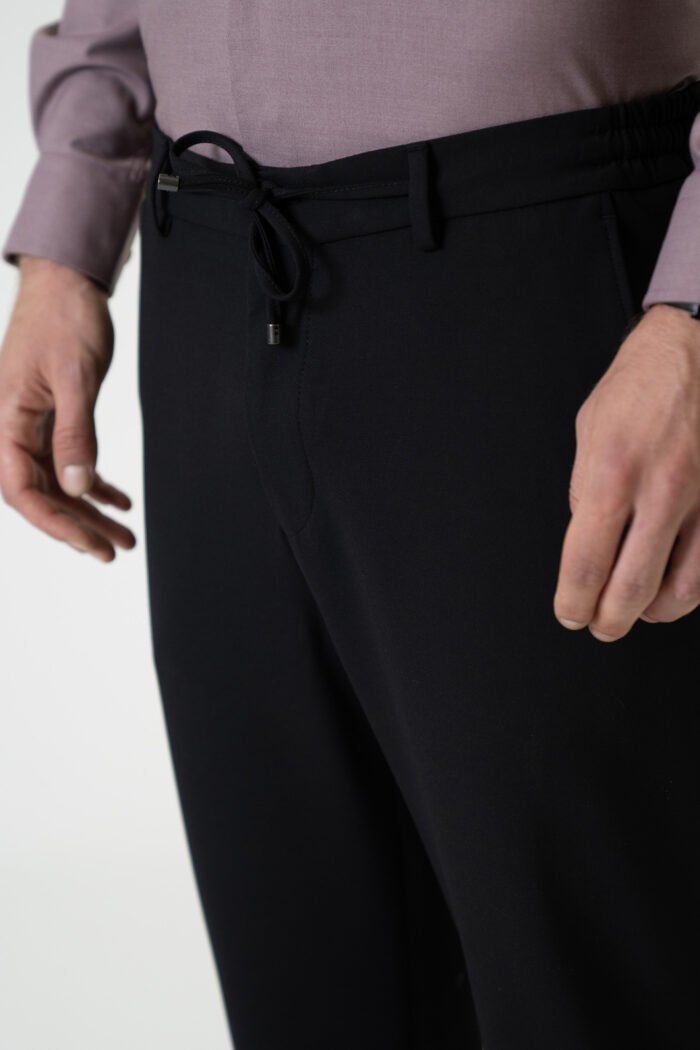 With their modern cut and understated elegance, these black trousers are set to become an essential piece for both everyday and office outfits. The drawstring waist detail offers comfort and practicality, while the soft-textured fabric ensures all-day ease. Thanks to their minimal design, they can be effortlessly paired with jackets and shirts to create a timeless look.