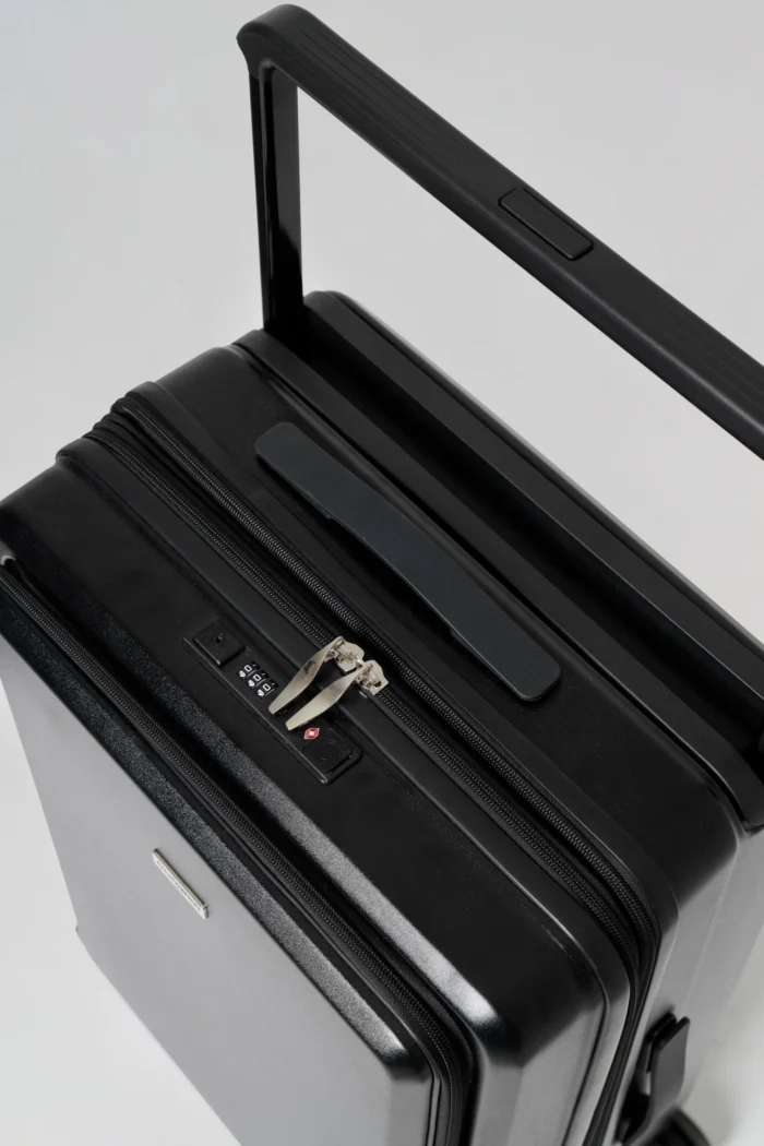 This classic black cabin size suitcase, which will reflect your style on your travels, offers elegance and functionality together. Drawing attention with its durable and lightweight structure, this suitcase can be easily used in airplane cabins with its compact size. Standing out with its modern and elegant design, this suitcase will be an indispensable part of your travels.