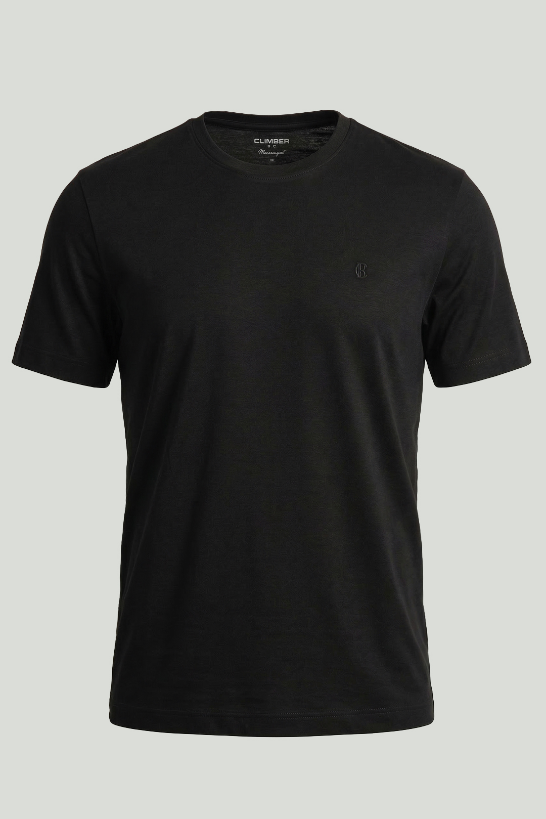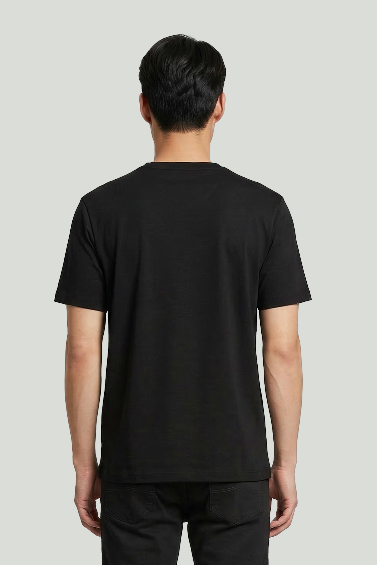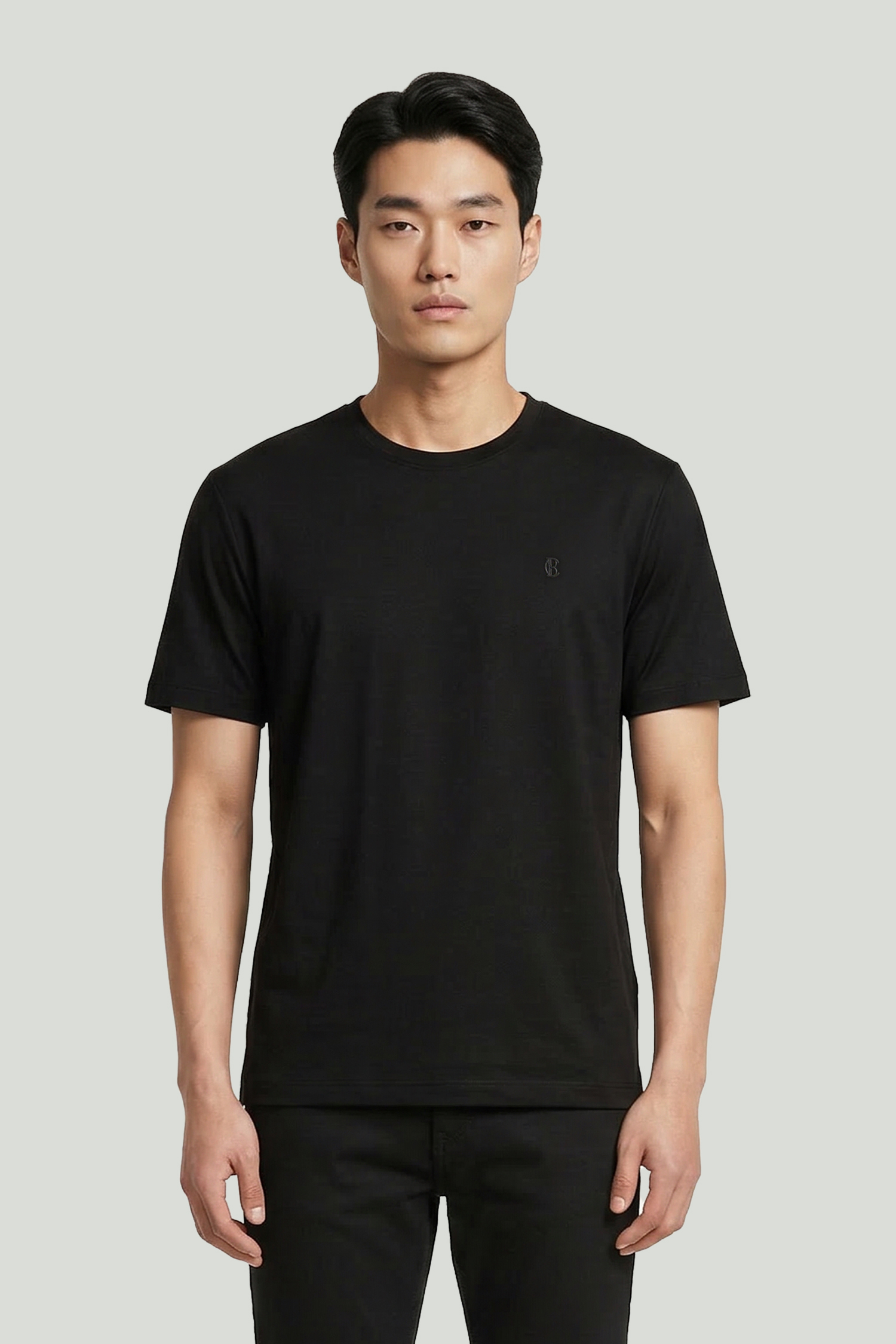 Offering a minimal yet strong style, this black T-shirt reflects a modern take on understated elegance with its clean surface and subtle logo detail on the chest. It provides comfort for everyday wear while remaining a timeless piece that pairs effortlessly with any outfit.