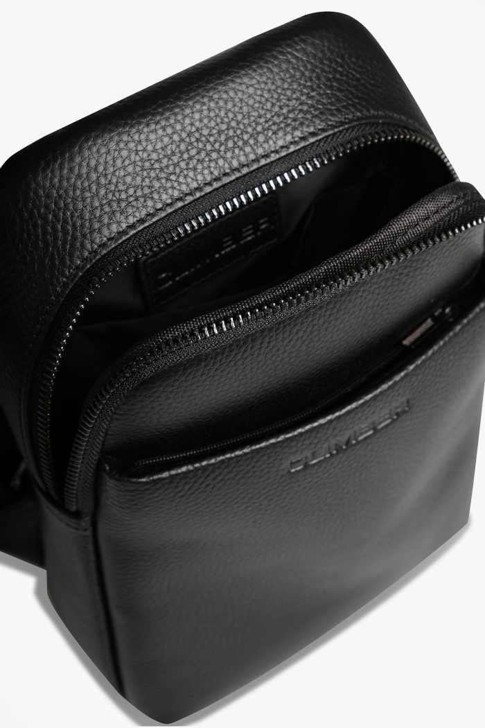 Черная кожаная маленькая сумка через плечо