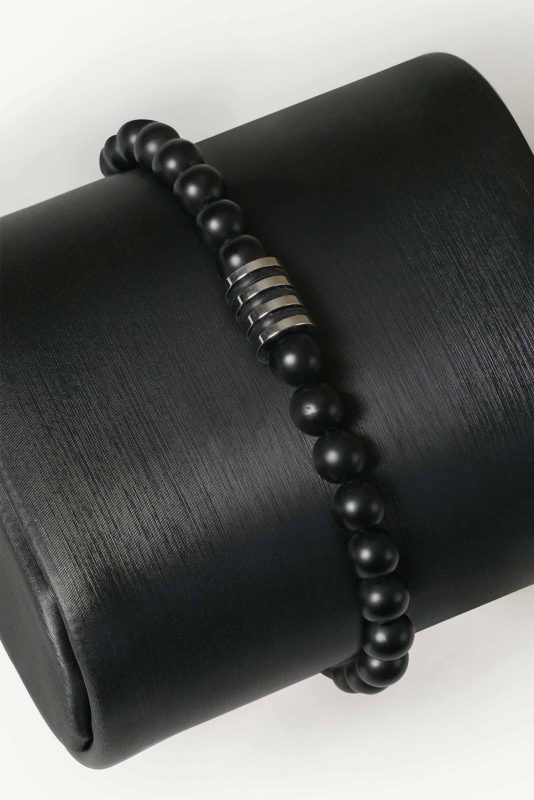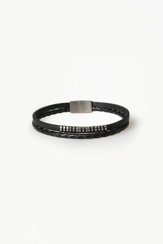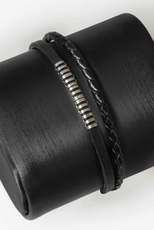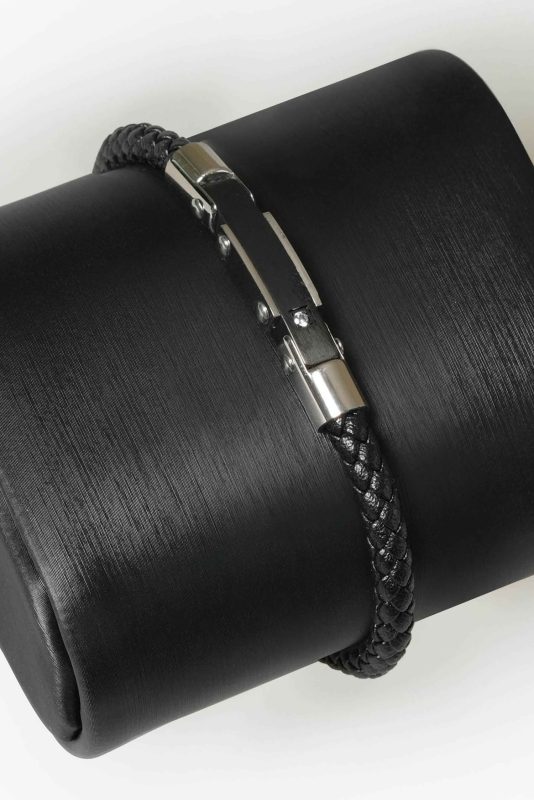 Этот черный кожаный браслет, выполненный в современном стиле с четкими линиями, украшен элегантными каменными деталями на стальной вставке, что добавляет ему изысканности. Благодаря минималистичному дизайну он дополнит как классический, так и современный стиль.
