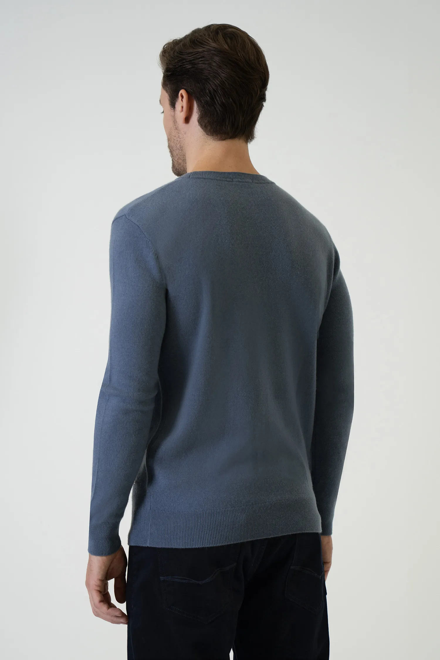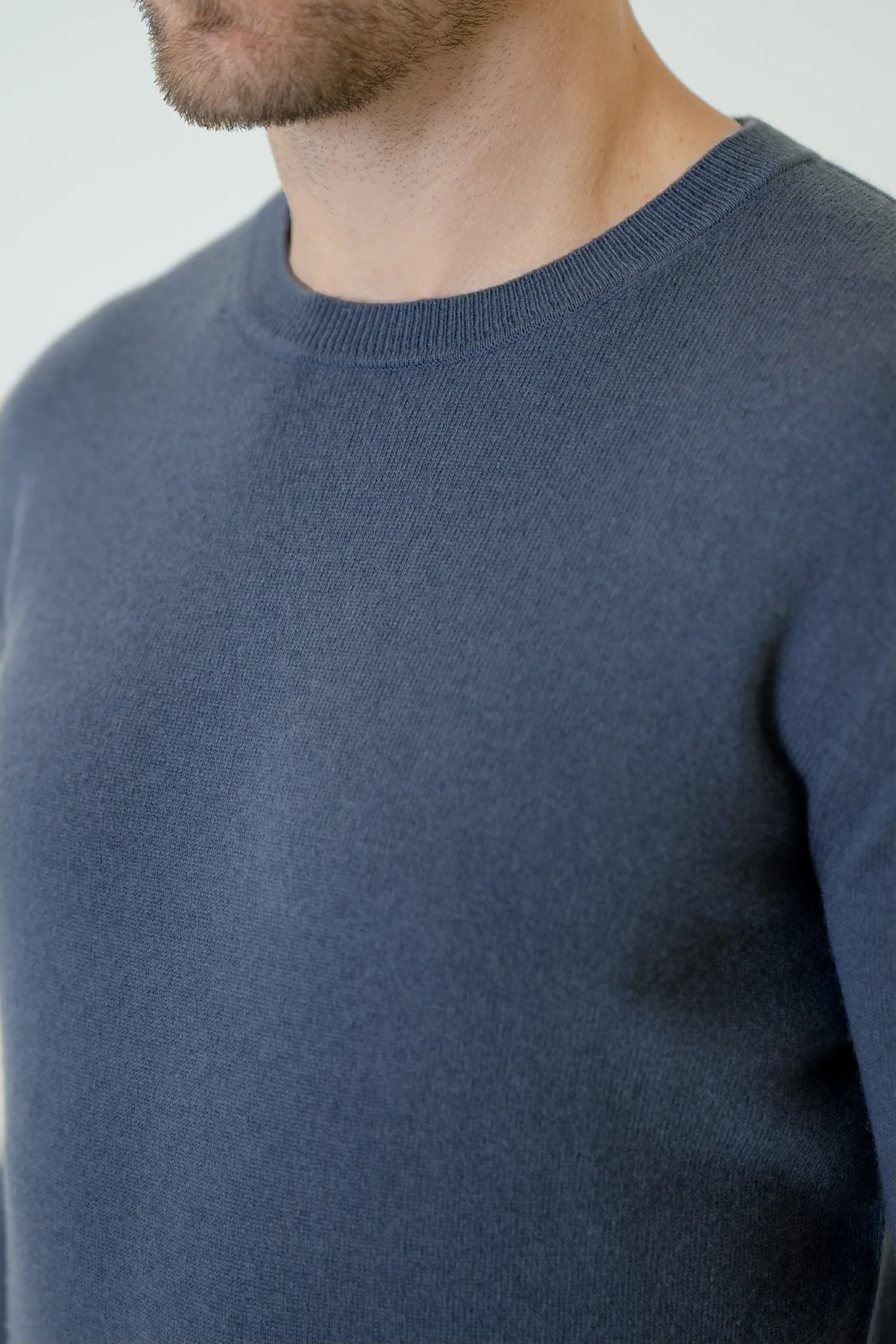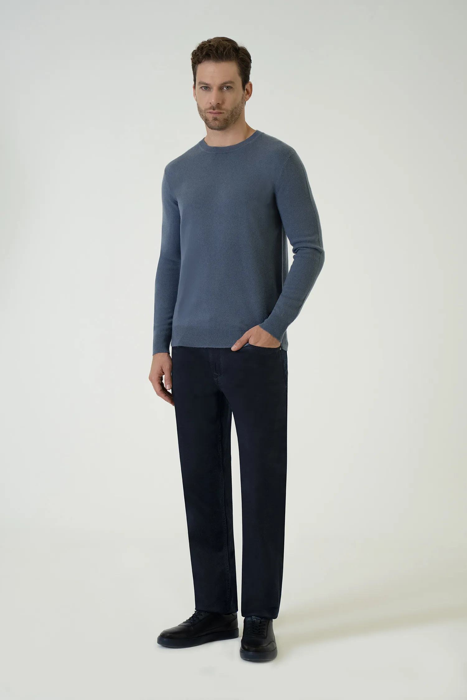 Blending the refined softness of a cashmere blend with a modern blue tone, this crew-neck sweater becomes one of the most sophisticated pieces of the smart-casual wardrobe. Its lightweight feel, smooth surface, and understated elegance create a clean and polished look.