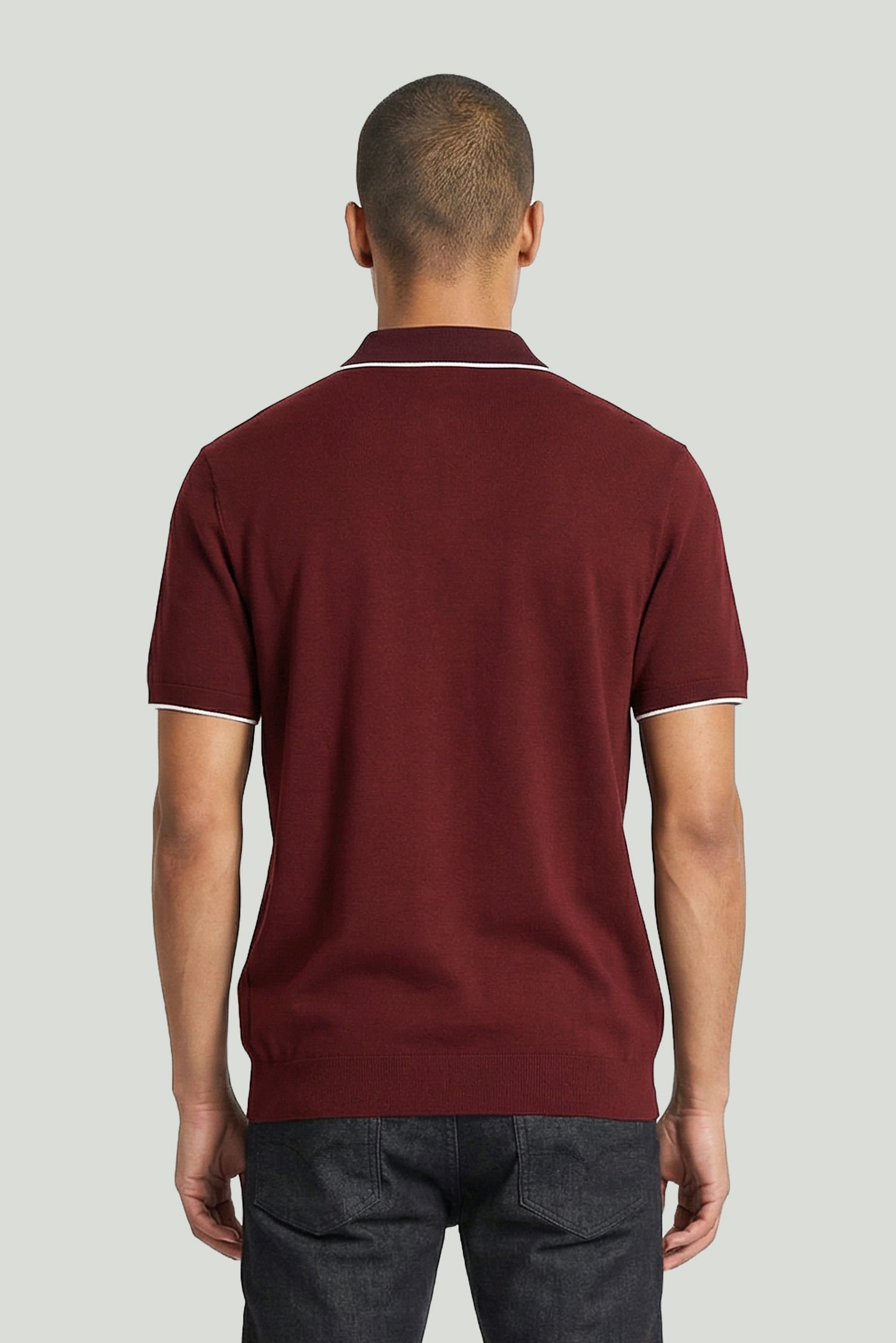 Burgundy Polo Collar Knitted T-shirt