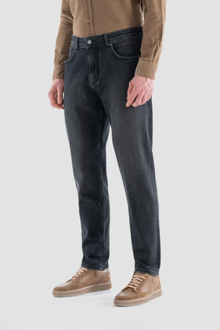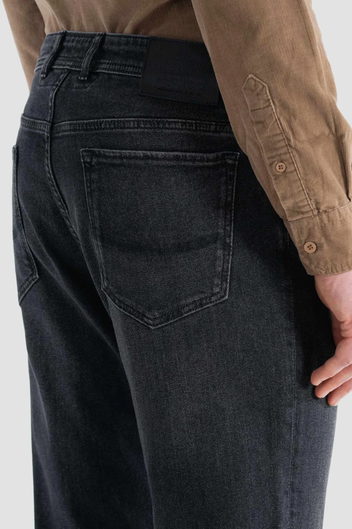 These modern-cut black jeans are the ideal choice to add a sophisticated touch to your daily style. Light wash details give the pants a dynamic look, while their relaxed cut provides all-day comfort. These pants, which can easily match both sporty and stylish combinations, are a candidate to become one of the indispensable pieces of your wardrobe. You can achieve a casual style with sneakers and a more formal stance with classic shoes. Thanks to its flexible structure, it allows you to move freely and highlights your style in every environment.