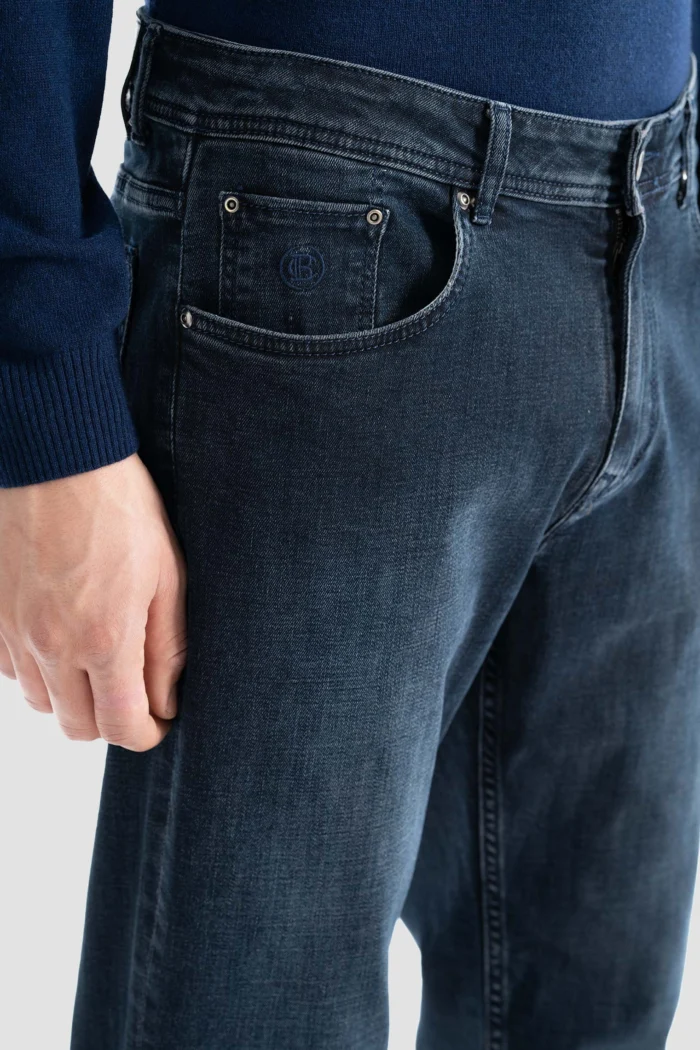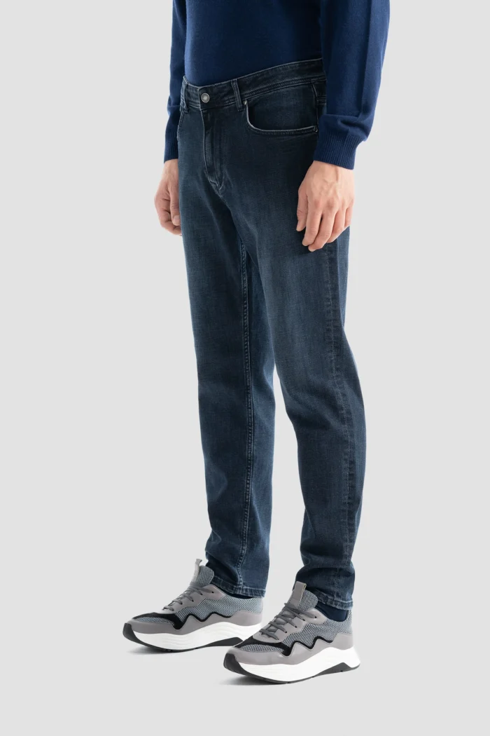 These men’s jeans in the visual stand out with their modern cut and comfortable structure. Their dark blue color is ideal for both daily use and elegant invitations, matching all kinds of combinations. While offering comfortable use all day long thanks to their flexible fabric, they highlight your style with their body-hugging structure. Their five-pocket classic design offers functional use while offering stylish and sporty looks together. These jeans, which can be preferred in every season, are a candidate to become one of the indispensable pieces of your wardrobe.