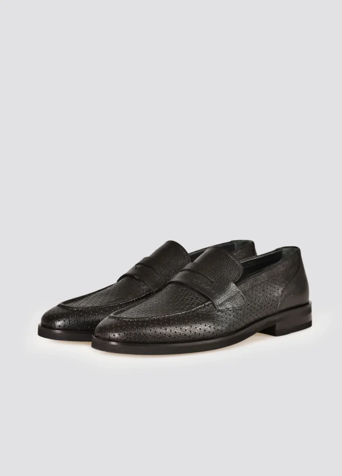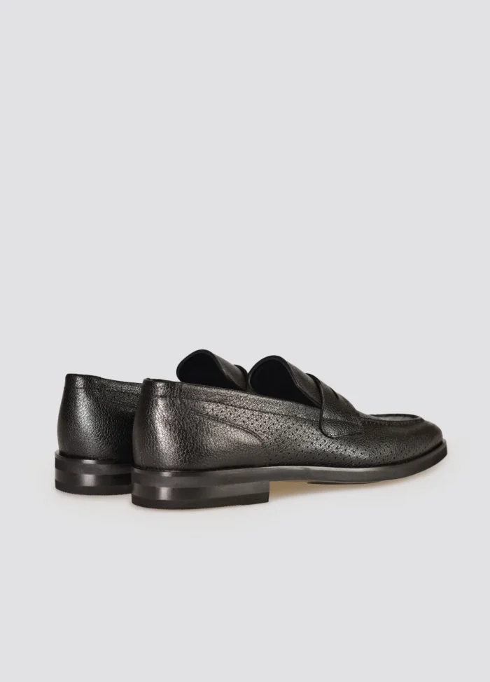 The stylish and elegant black leather shoes in the image are one of the indispensable pieces of the modern man. Made of high-quality leather, this shoe is a perfect choice for both business life and special occasions. This model, which draws attention with its fine stitching details and elegant design, offers comfort with every step.