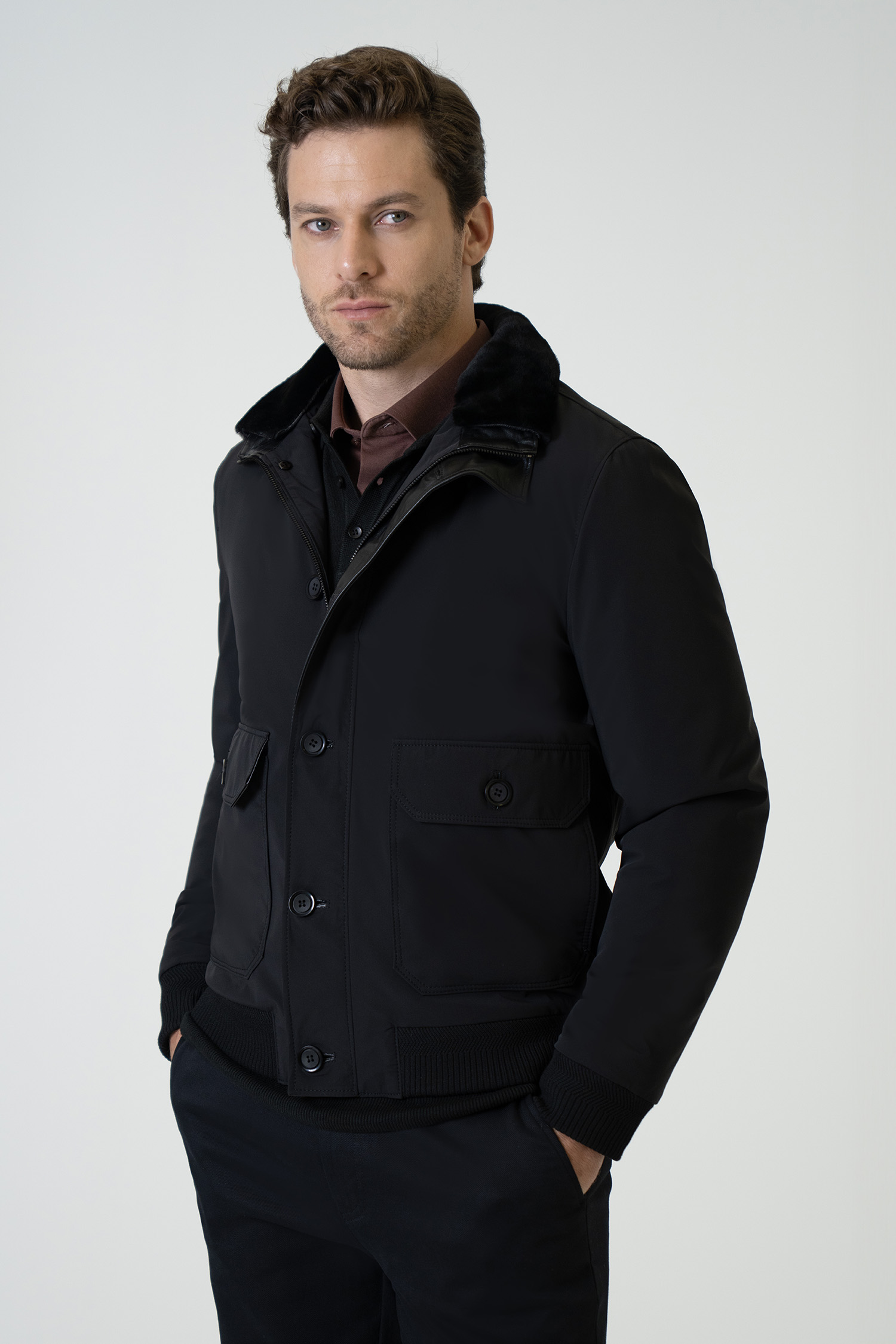 Combining classic and modern lines, this jacket stands out with its refined details. The soft-textured black fur collar provides warmth, while the button and zipper closure with large front pockets adds functionality. Its water- and wind-resistant fabric ensures maximum comfort during winter. With its elegant and timeless design, it complements both city life and weekend style.