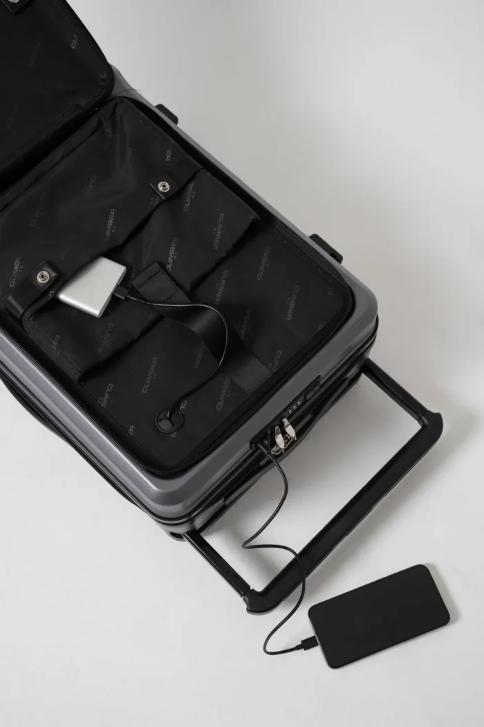 The interior volume of the suitcase is equipped with various compartments that allow you to place your belongings in an orderly manner. While its four-wheel system allows you to carry your suitcase effortlessly, the telescopic handle offers easy use. In addition, thanks to the integrated USB port, you can charge your devices throughout your trip.