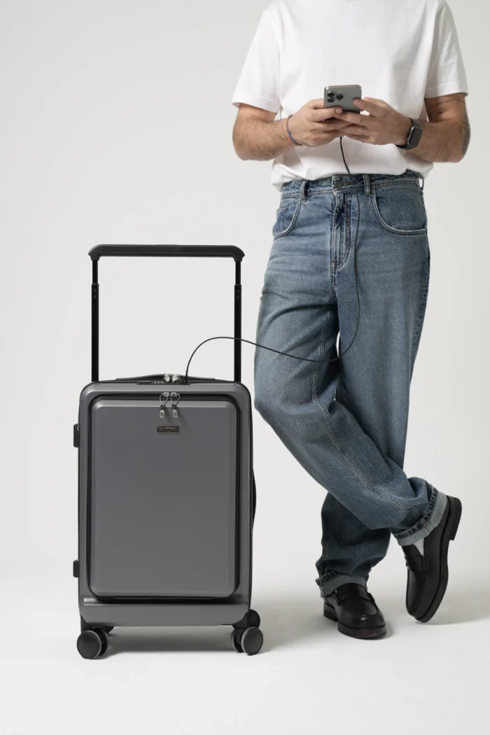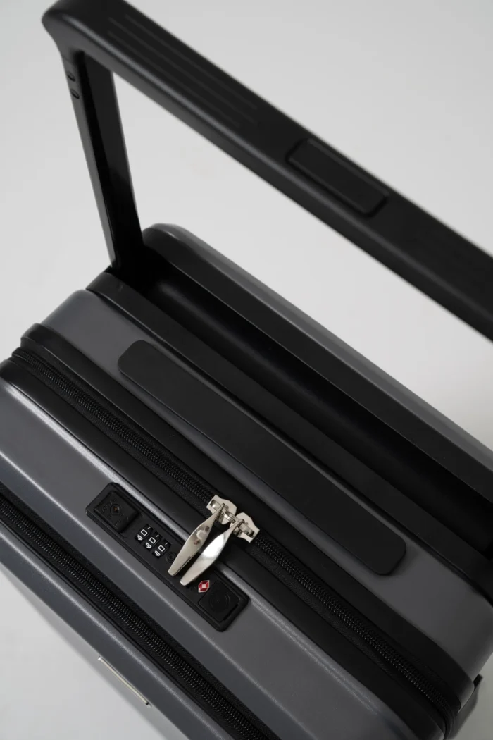 This modern cabin size suitcase, which will make your travels more comfortable and stylish, offers practicality and elegance together. Made of lightweight and durable material, this suitcase can be easily carried in the aircraft cabin with its compact size. With its stylish gray color and minimal design, it adapts to your style both on your business trips and weekend getaways.