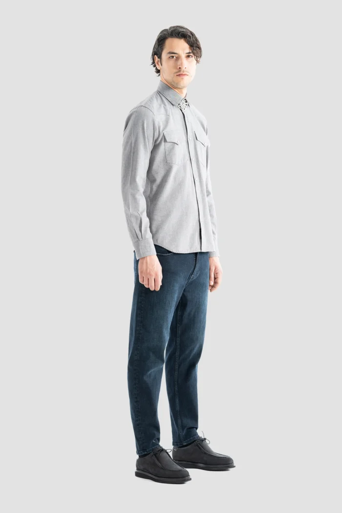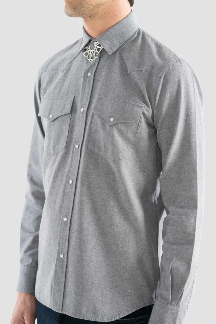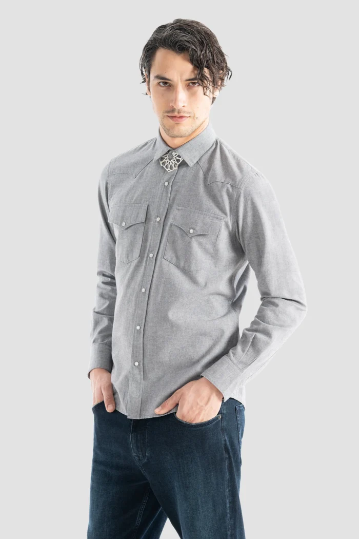 This modern cowboy shirt, which brings together elegance and comfort, combines western style with urban elegance. Its soft texture and skin-friendly fabric provide comfort all day long, while its gray tone offers an eye-catching look in any environment. Standing out with its fine details and cut, this shirt will add a sophisticated touch to your style both in your daily combinations and in your special moments. Whether you wear it alone or under your jacket, this shirt promises to make a difference in every style. Add this shirt to your wardrobe to differentiate your clothing style and dazzle with your elegance at all times!