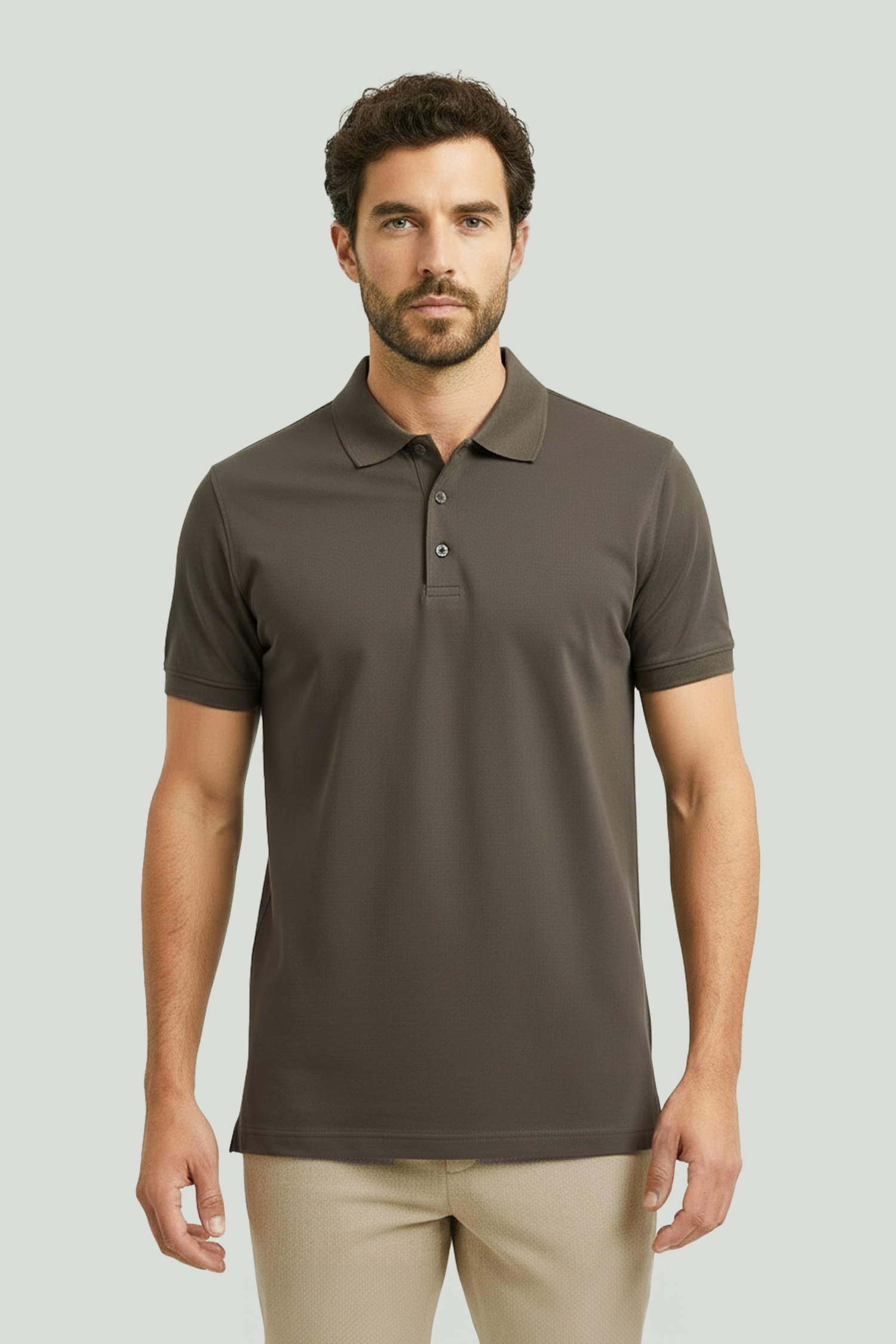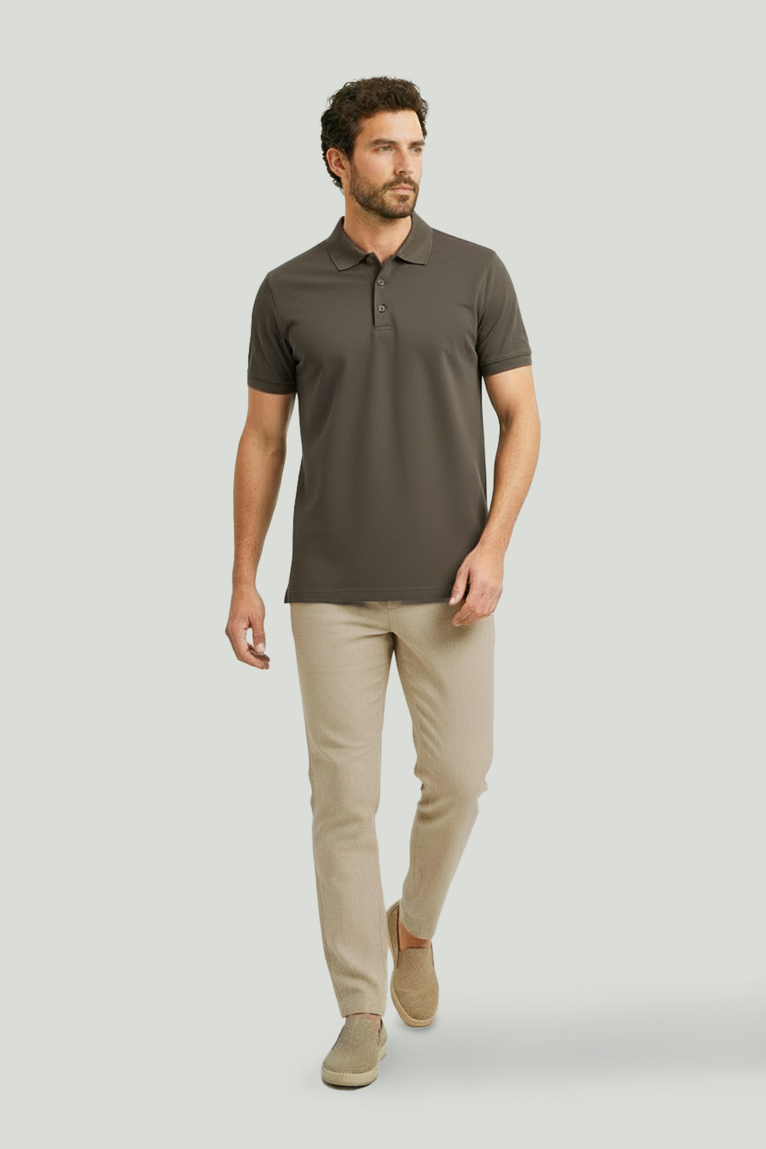 Эта рубашка-поло, выделяющаяся своим естественным оттенком хаки и лаконичным дизайном, сочетает в себе вневременной стиль и современный комфорт. Гладкая и однотонная поверхность обеспечивает четкий силуэт, а сбалансированный крой гарантирует аккуратный внешний вид. Дышащая ткань обеспечивает комфорт в течение всего дня и легко сочетается с брюками и пиджаками, создавая элегантный повседневный образ.