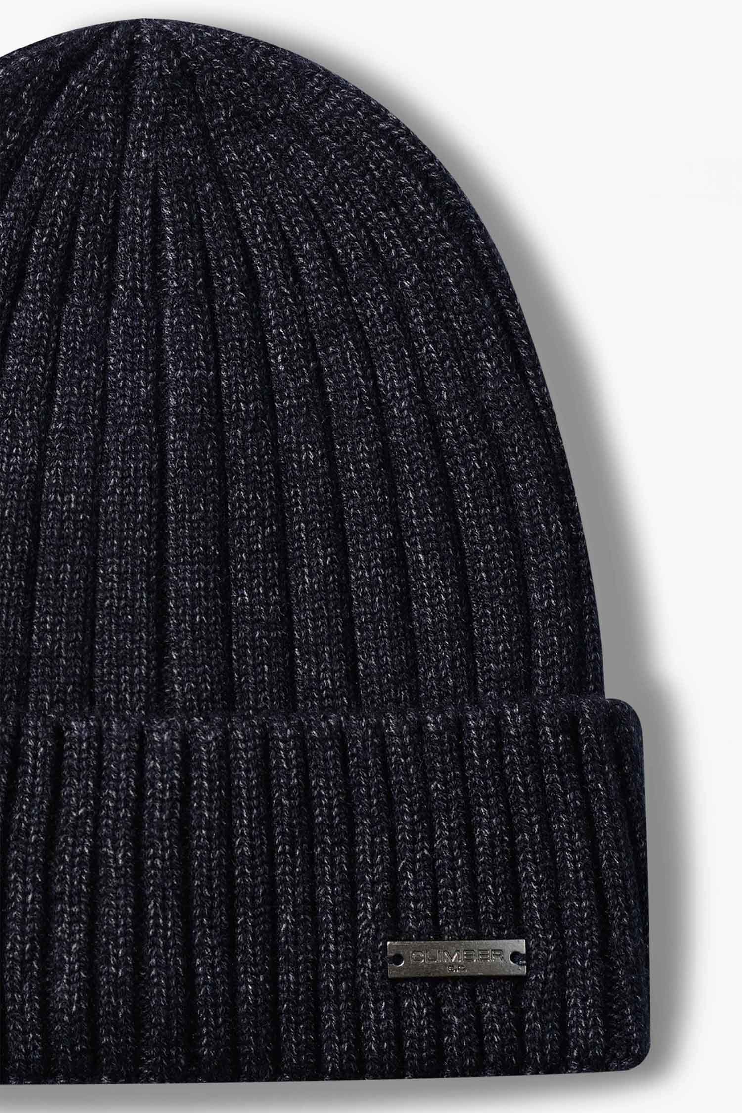Эта толстая вязаная шапка классического темно-синего цвета, подходящая к любому стилю, обеспечивает тепло и комфорт, сохраняя при этом свою форму благодаря ребристой вязке. Мягкая текстура и эластичный крой делают ее идеальным выбором для холодных зимних дней. Металлический логотип CLIMBER выделяется как современная и элегантная деталь.