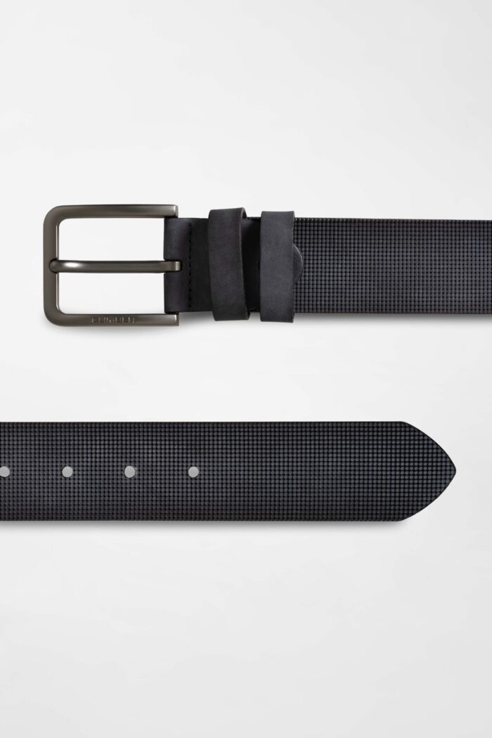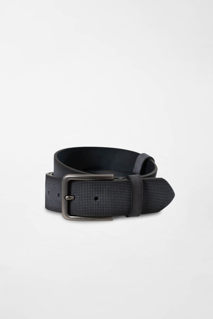 This dark navy leather belt is a must-have piece in every man’s wardrobe with its sophisticated design and fine texture. With its elegant metal buckle and durable structure, this belt, which you can easily use in both business and daily combinations, will take your style one step forward. It offers long-lasting use thanks to its minimalist details and quality material. This belt, which will help you maintain your elegance in every environment, is an ideal choice for those looking for a classic touch.