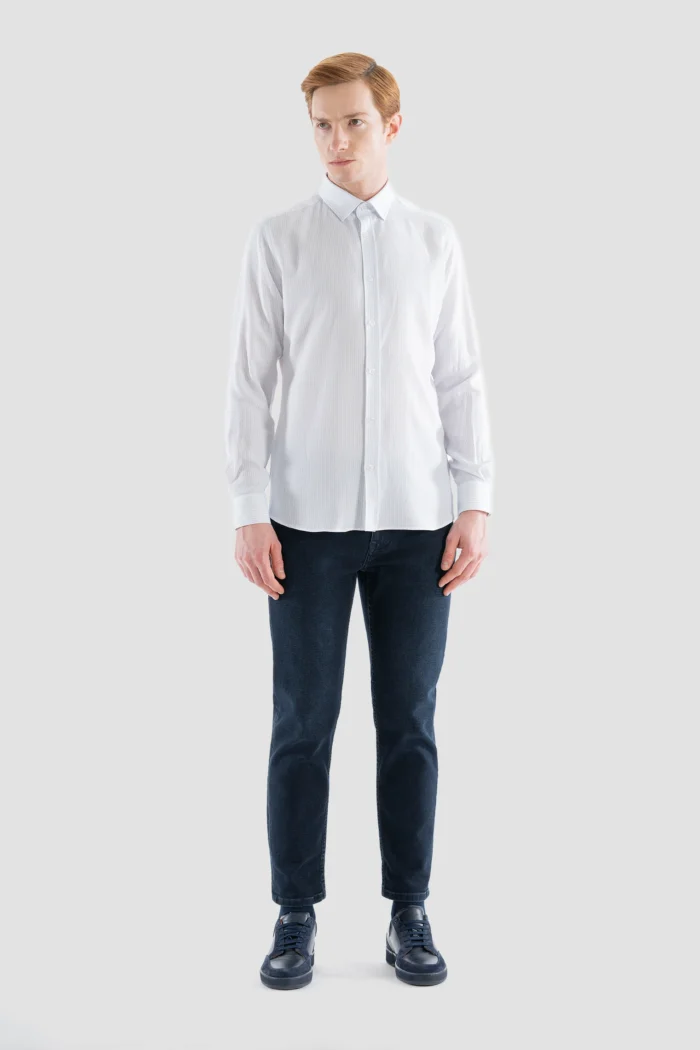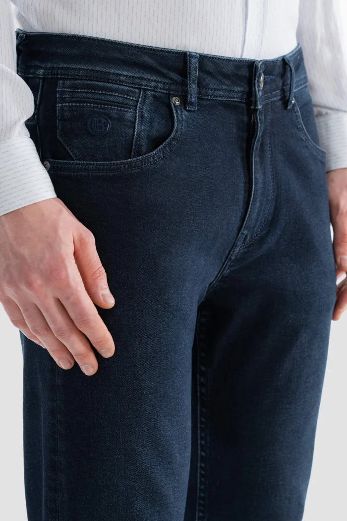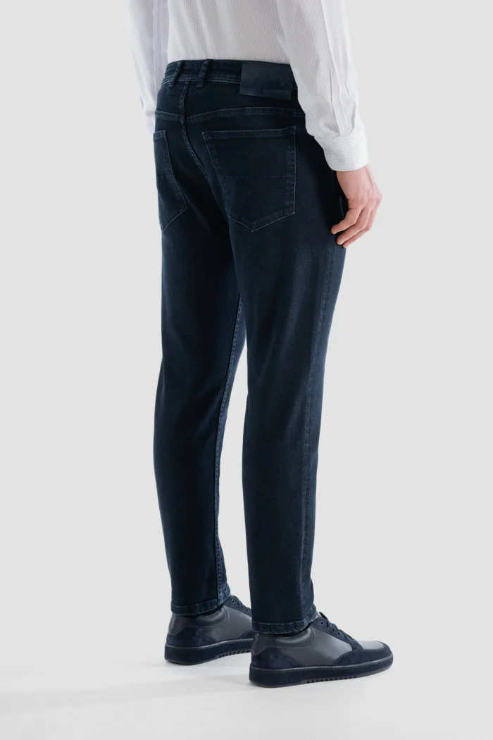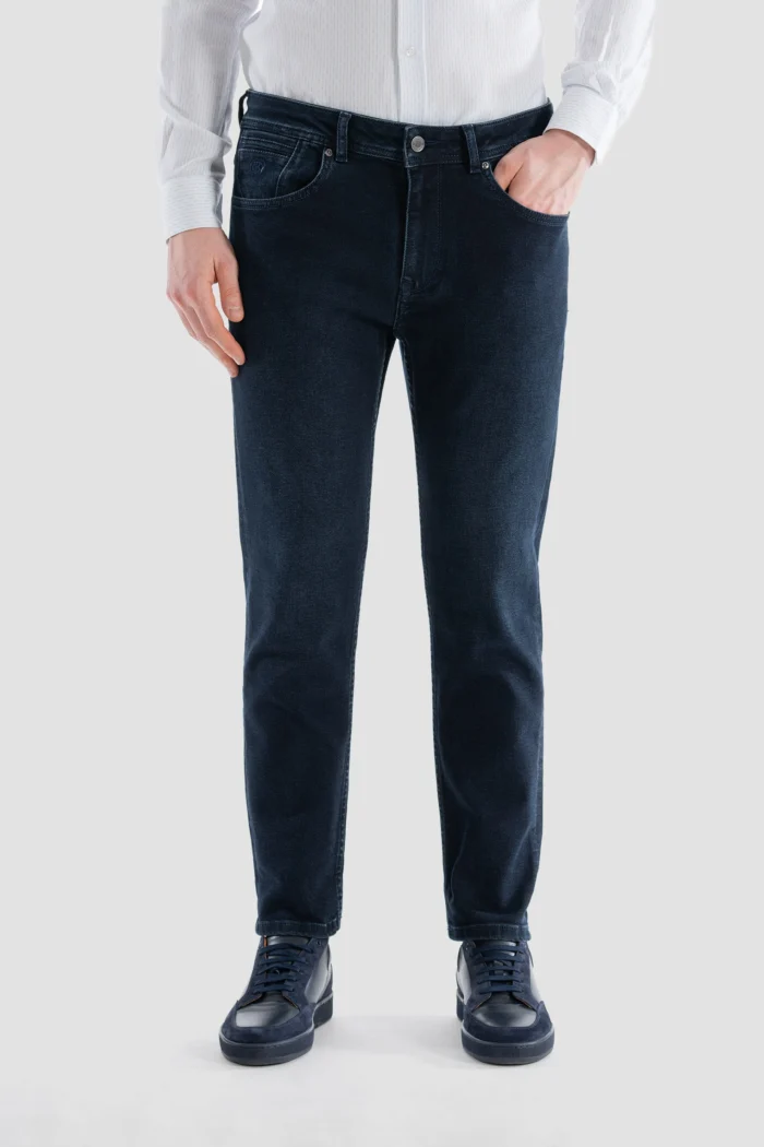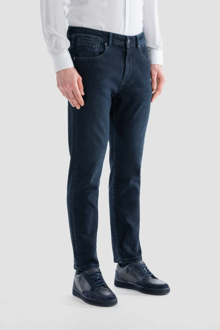 This modern and stylish pair of jeans is a basic piece that every man should have in his wardrobe. With its dark navy color, it can be easily used in both casual and semi-formal combinations. Its slim fit cut hugs the body elegantly, while its flexible fabric provides comfortable use all day long.