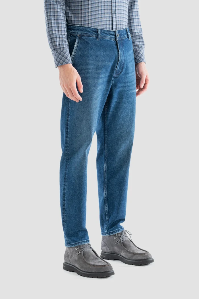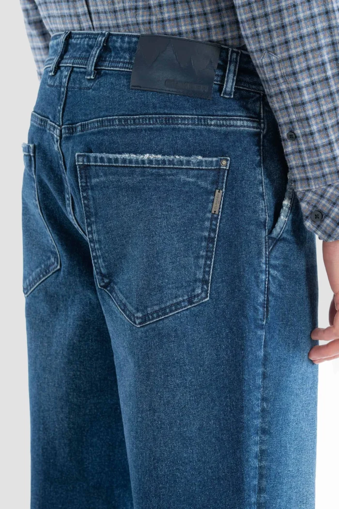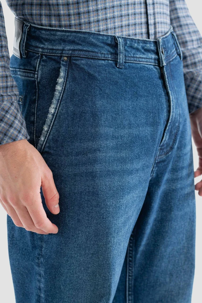 These classic blue jeans in the image offer elegance and comfort together. Perfectly suited to your daily style, these pants offer comfort all day long with their flexible fabric and modern cut. This model, which you can prefer in both your casual and semi-chic combinations, can also be easily combined with different top clothing options. With their sturdy stitching and durable structure, these jeans, which you can use for a long time, are a candidate to become one of the indispensable pieces of your wardrobe.