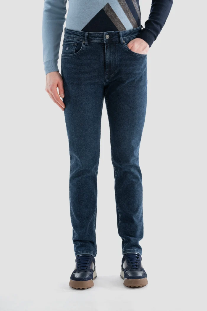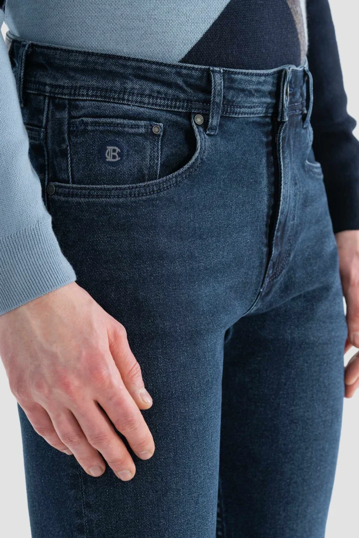 These modern and stylish jeans are an ideal choice for men looking for both comfort and style in daily wear. While its flexible fabric offers comfort all day long, it creates an elegant silhouette with its body-hugging cut. These pants, which can be combined with all kinds of combinations with dark blue tones, are the perfect complement for both sports and casual styles.