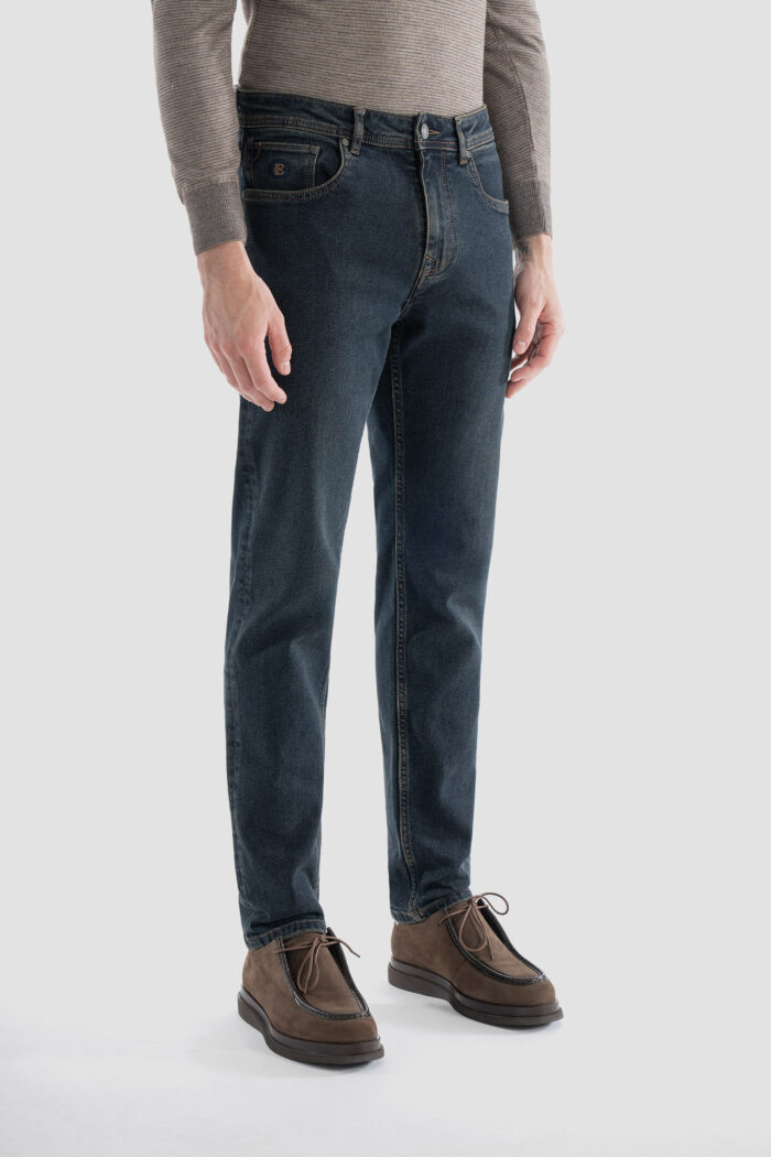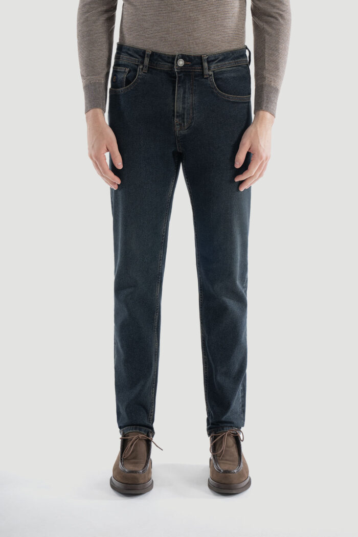 Dark blue denim trousers are a candidate to become an indispensable part of your wardrobe with their timeless style. Offering daily elegance and comfort together, these trousers easily match with different combinations.