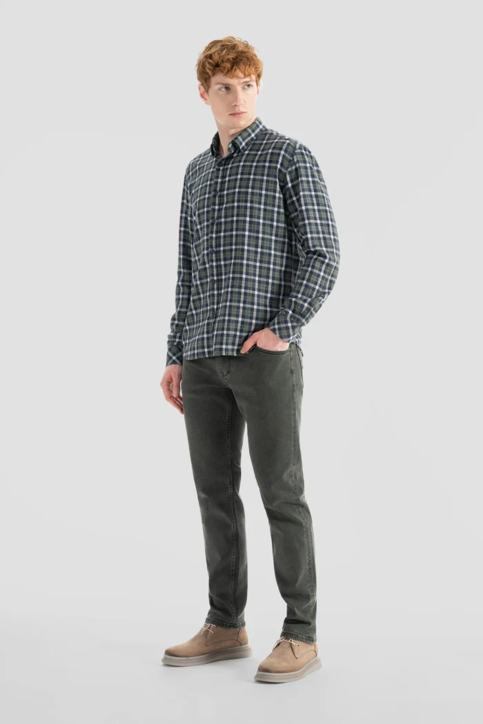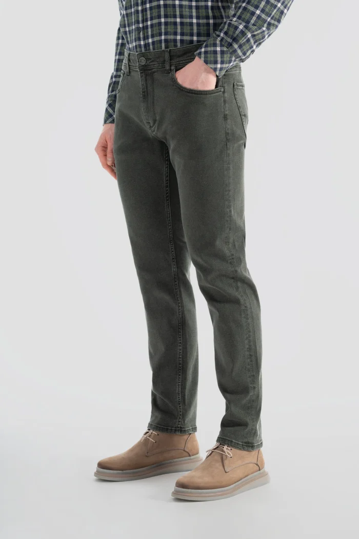 These green-toned men’s jeans in the visual are a perfect choice for those looking for both comfort and elegance. While providing all-day comfort thanks to its soft texture and flexible structure, it highlights your style with its modern cut. Its classic five-pocket design increases functionality in daily use. Its green color adds a sophisticated air inspired by nature, and can be easily combined with all kinds of shirts, t-shirts and sweaters. Ideal for both casual and smart-casual styles, these pants are a candidate to become one of the indispensable pieces of your wardrobe.