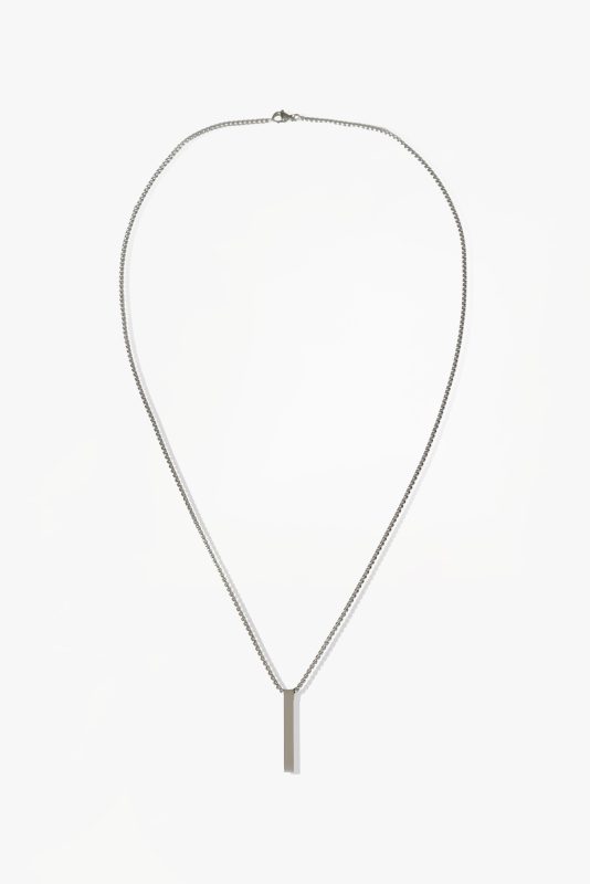 Это прямоугольное колье из нержавеющей стали, отражающее элегантность минимализма, демонстрирует современный стиль благодаря своей простой форме. Серебристая поверхность изящно отражает свет, благодаря чему оно легко сочетается с любым стилем.